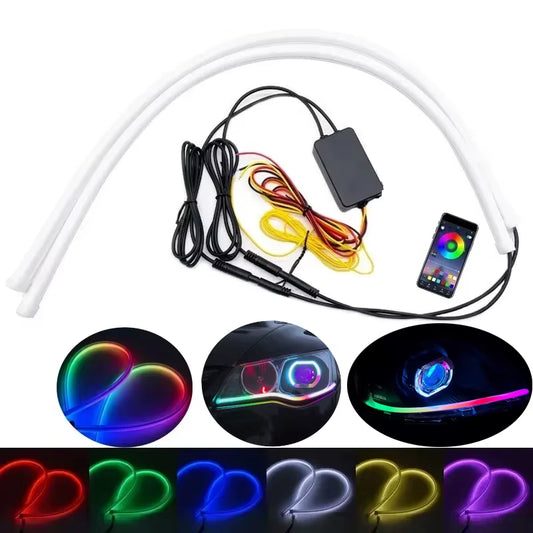 2Pcs RGB DRL LED Daytime Running Driving Light Strip Remote Control Flexible Waterproof Headlight Turn Signal Yellow Lamp 12V